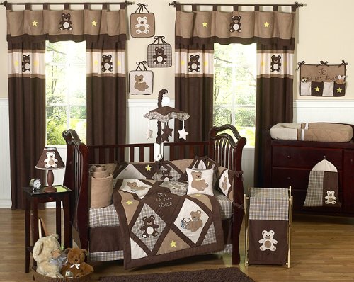 Chocolate Teddy Bear Baby Boys Bedding - 9pc Crib Set